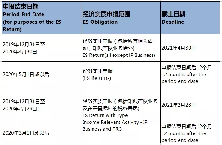 關于提交經濟實質申報表(ES Return)的截止日期總結如下: