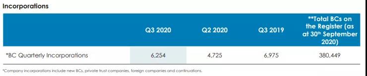 截至2020年9月30日,在BVI注冊的公司總數(shù)達到了380449家。新注冊的公司包括商業(yè)公司、私人信托公司、外國公司和延續(xù)公司。