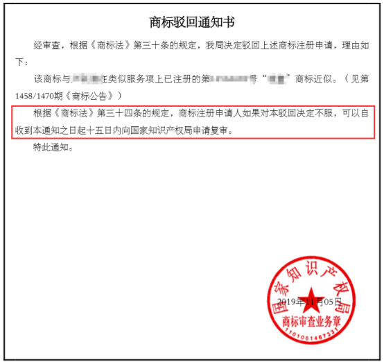 如果商標(biāo)不通過,國(guó)家會(huì)下發(fā)商標(biāo)駁回通知書,說明原因,并且會(huì)附上一段話:
